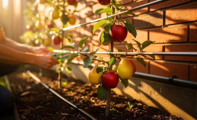 Spalierbäume im kleinen Garten: Platz sparen und Ertrag maximieren – Anleitung zu Kordon/Palmette, Spaliergerüst, Pflanzabständen, Bewässerung und Schnitt.